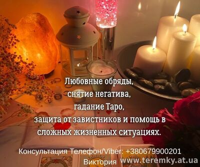 Ищете ясновидящую, таролога, экстрасенса в Киеве? Меня зовут Виктория. Я ясновидящая, экстрасенс, рунолог и таролог. Уже много лет я помогаю людям находить ответы на самые сложные вопросы, менять судьбу |